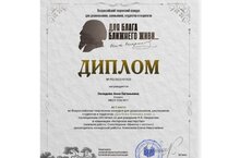 во Всероссийском творческом конкурсе для дошкольников, школьников, студентов и педагогов "Для блага ближнего живи...",посвященном 200-летию со дня рождения Н.А. Некрасова в номинации Актерское мастерство".