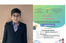 Саламов Файз был удостоен Диплома 1 степени в Республиканском конкурсе поэтических переводов с английского языка на русский и татарский языки. Номинация: перевод на русский язык. Руководитель: Артемова А.В.