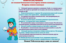 Памятка для учащихся по технике безопасности на период зимних каникул 28.12.2021