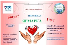 Внимание! Внимание! Благотворительная ярмарка в поддержку участников СВО пройдет в МБОУ СОШ № 11! 20.10.2024
