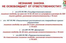 Заместитель директора по воспитательной работе Жилина Е.М. ознакомила учащихся 7-10 -х классов с Уголовным кодексом Российской Федерации, обратив особое внимание на ответственность, предусмотренную следующими статьями: