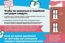 - Будьте внимательны при передвижении вдоль домов, выбирайте маршруты подальше от карнизов крыш.