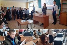 На онлайн-уроке присутствовали учащиеся Бугульминской средней школы N11, учитель географии Дятлов Алексей Вениаминович, заместитель администрации города Бугульмы по социальным вопросам ПлехановаО.А., а со стороны Беларуси - учащиеся школы д. Переделка Лоевского района Гомельской области во главе с учителем истории и обществоведения Колосом Андреем Васильевичем.