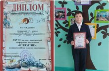 Ученика 7 класса МБОУ СОШ 11 Токмачева Никиту с победой в XXVIII научно-практической конференции школьников "ОТКРЫТИЕ",посвященной Году педага и наставника.