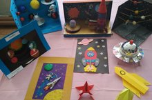 Ко дню космонавтики с 8 по 12 апреля в школе проходит конкурс-выставка поделок, макетов и плакатов.