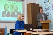 Гостем урока стал Генеральный директор авиакомпании ЮВТ Аэро Трубаев П.В. Он еще раз акцентировал внимание будущих избирателей на важность участия в выборах. -
