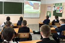 Далее обучающиеся отправились на очередное внеурочное занятие из цикла «Разговоры о важном»на тему: «Там, где Россия».