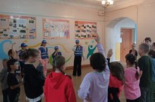 В ходе урока школьники повторили с инспектором правила безопасного поведения на дороге.