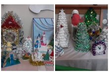 Можно просто изумиться глядя на поделки, которые выполнили учащиеся начальных классов вместе со своими родителями. Они проявили удивительную фантазию при изготовлении поделок из природного и бросового материала. Здесь можно увидеть волшебные часы, елочек-красавиц, снеговиков-помощников и многое другое.