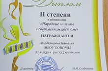 Прошёл Муниципальный конкурс " Народные мотивы в современном костюме",где педагог МБОУ ООШ №12 заняла диплом II степени