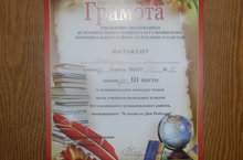 Дегтярёва Дарья заняла 3 место в муниципальном конкурсе чтецов, посвящённого 70 – летию Победы. Победителем международного конкурса «Русский медвежонок» стал ученик 3а класса – Загретдинов Андрей. Хочется отметить победителей Республиканских соревнований по туризму. Ученица 7 класса Сидтикова Алина заняла 1 место и ученик 6а класса Федоров Эдик занял призовое третье место. Поздравляем всех с успешным окончанием 3 четверти. Желаем хороших каникул!