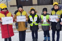 Ребята еще раз напомнили всем учащимся школы о правилах безопасного поведения на дороге и в транспорте, о необходимости использования световозвращающих элементов в темное время суток.