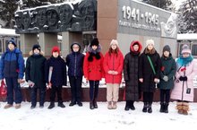 Ребята возложили цветы у мемориала Вечный огонь. -