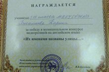 Учащиеся школы, сборная команда (5б, 6б, 10 класса) стали победителями муниципального конкурса видеороликов на английском языке «Их именами названы улицы». Конкурс проводился в целях сохранения исторической памяти и направлен на воспитание патриотических чувств любви к малой родине и привлечение обучающихся к туристско-краеведческой работе по изучению и сохранению исторического наследия Республики Татарстан. Поздравляем победителей. Молодцы!