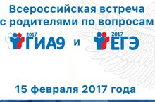 15 февраля 2017 года руководитель Федеральной службы по надзору в сфере образования и науки Сергей Кравцов в Ситуационно-информационном центре ведомства проведет всероссийскую встречу с родителями по вопросам проведения государственной итоговой аттестации по программам основного общего и среднего общего образования в 2017 году.Руководитель и специалисты Рособрнадзора ответят на вопросы родителей, касающиеся:- организации и проведения в 2017 году ЕГЭ и ГИА-9;- содержания контрольных измерительных материалов ГИА-11 и ГИА-9;- особенностей проведения государственной итоговой аттестации для выпускников школ с ограниченными возможностями здоровья;- минимального количества баллов ЕГЭ для получения аттестата и поступления в вузы.В настоящее время уже принимаются вопросы:- по электронной почте ege@obrnadzor.gov.ru;- на странице Рособрнадзора в социальных сетях.