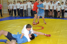 16 ноября в школе №13 в рамках реализации проекта был проведен Всероссийский день самбо. День начался с торжественной церемонии открытия мероприятия. На мероприятии присутствовали гости от отдела Управления образования города Бугульма,начальник отдела по делам молодежи и спорта Бугульминского муниципального района Тахиатуллин И. Р., спортсмены-самбисты города. Линейка началась с парада участников.Далее к участникам проекта «Самбо в школу» обратился в своем видеообращении заместитель министра образования и науки РФ В.Ш.Каганов. В конце мероприятия юные самбисты показали творческие выступления по самбо.После проведения торжественной линейки для учеников 4 - 9 классов прошли классные часы по теме: «История самбо-история России», которые сопровождались просмотром презентаций и видеофильмов. Всего было задействовано 300 учащихся. Ученики начальных классов приняли участие в конкурсе рисунков, посвященных Дню рождения самбо. В данном конкурсе участвовало 150 ребят. Ребята творчески подошли к данной работе.Среди учащихся 4-5 классов была проведена спортивная эстафета. В эстафету были включены элементы техники самбо.Учителями физической культуры были проведены открытые уроки с приглашением спортсменов-самбистов.Этот день прошел в школе ярко и насыщено. Многие учащиеся в течение этого дня узнали много нового об этом виде борьбы. Все зарядились хорошим настроением и позитивом. -