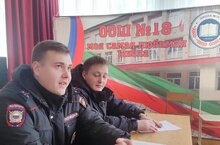 Провели беседу участковые уполномоченные полиции Насыров Артур Сергеевич и Сучков Александр Андреевич. Темами беседы были: соблюдение законности, правила поведения в общественных местах и массовых мероприятиях, правила поведения на улице, профилактика табакокурения, употребления алкоголя и ответственность несовершеннолетних, соблюдение правил дорожного движения, соблюдение комендантского часа. Участковые уполномоченные полиции рассказывали не только о законах, но и приводили примеры о том, какие последствия наступают за совершенные правонарушения. Беседа для учащихся получилась не только познавательной, но и очень полезной.