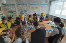 Отряд ЮИД "Светофор" работает над мероприятием на повторение правил дорожного движения.