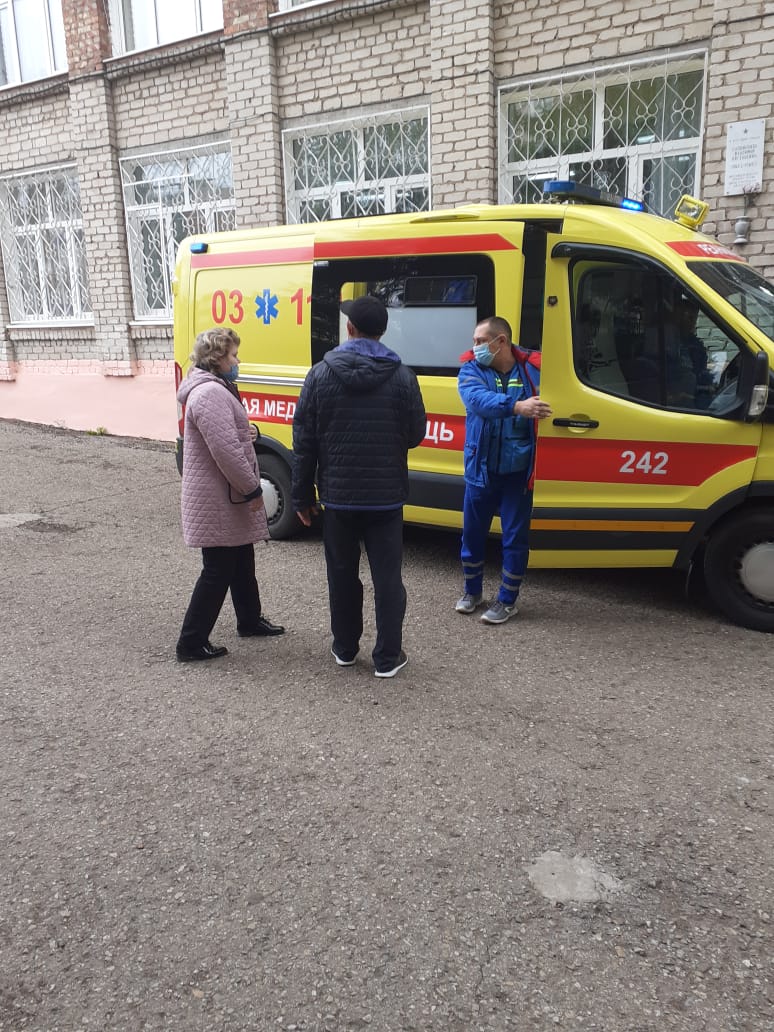 Прибывший боевой расчет 64 ПСЧ (3 спасателя) поднялись на второй этаж в кабинет физики одели пострадавшему спасательный конюшен и вывели его из школы.