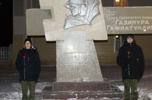 Волонтёры Победы 9 А класа очистили от снега памятник Газинуру Гафиатуллину и возложили цветы Герою.