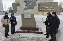 14 января 1944 года геройски погиб Газинур Гафиатуллин, чьё имя гордо носят Бугульминские кадеты. Сегодня девятиклассники очистили от снега памятник "Улица Героя Советского Союза Газинура Гафиатуллина" и возложили цветы.