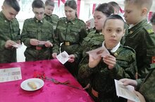 Перед завтраком ученики школы ознакомились с рационом блокадного Ленинграда из акции «Блокадный хлеб».