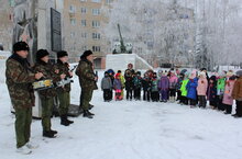 Малыши узнали об истории празднования Дня защитника Отечества и боевом пути 352-й стрелковой дивизии. В память о героях-земляках возложили цветы.