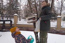 Активисты экологического отряда "Землянам о Земле" подкармливают зимующих приц на пришкольном участке.