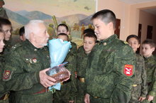 Кадеты послушали рассказы и наставления офицера и поздравили его с Днём пожилых людей и Днём учителя.