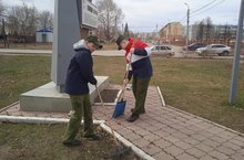 Волонтёры школы убрали территорию памятника УЛИЦА ГЕРОЯ СОВЕТСКОГО СОЮЗА А. РУДАКОВА от мусора, помыли памятник, провели Вахту памяти с возложением цветов и раздали прохожим письма-треугольники с биографией Героя.