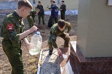 Волонтёры-кадеты очистили от мусора и помыли памятник "Улица Газинура Гафиатуллина"