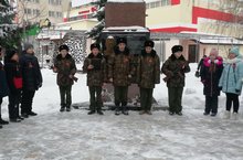 В день гибели Героя Советского Союза Газинура Гафиатуллина кадеты расчистили памятник Герою, построенный пожарными города, раздали прохожим листовки о подвиге Героя, провели митинг с воспитанниками прогимназии «Журавушка». В память о Газинуре, дети получили в подарок Георгиевские ленты.