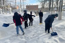 На уборку территории школы от снега вышли ребята, родители и учителя! Вместе мы справились с холодом и сделали нашу школу ещё более уютной!