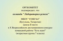 Администрация и педагогический коллектив поздравляют команду учащихся 7Б класса «Лаборатория успеха» и их руководителя учителя русского языка и литературы Гришанину Е.С., занявших II место в X Всероссийском дистанционном конкурсе командной работы «Есть идея». Молодцы! Желаем дальнейших творческих успехов!
