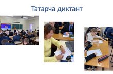 26 ноябрь көнне безнең мәктәптә “Татарча диктант яз” халыкара акциясе узды. Әлеге проекта безнен мәктәптән 60 кеше катнашты(8А, 8Б, 8В, 9А, 9Б сыйныф укучылары), шуларның 5 - се укытучылар һәм ата-аналар. Татарча диктант акциясе дөрес язуга, татар әдәби телне белүгә, орфографик һәм грамоталылык хаталарын тикшерүгә юнәлтелгән. Бу акциядә һәр елны мәктәп укучылыры, укытучылар , ата-аналар актив катнаша.