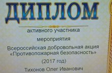 Поздравляем учителя ОБЖ нашей школы Тихонова Олега Ивановича, который награжден дипломом активного участника акции "Противопожарная безопасность"
