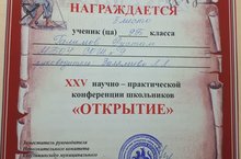 Обучающийся 7 класса Чехов Алексей принял участие в научно-практической конференции "Открытие"