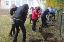 Учащиеся школы приняли активное участие в посадке деревьев на территории школы.