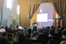 В рамках Дня охраны труда проводились мероприятия с работниками школы по вопросам охраны труда: "Общие требования безопасности при проведении занятий в кабинетах", показ видеоролика по теме "Правила поведения при возникновении пожара в общеобразовательном учреждении". Работникам школы был показан фильм "Оказание первой медицинской помощи при возникновении несчастного случая".
