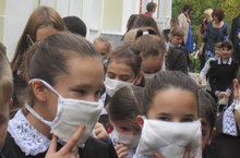 Все учащиеся одели повязки и вовремя эвакуировались.