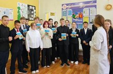 В церемонии посвящения приняли участие 10 класс нашей школы, которым было доверено почётное право приколоть значок юным участникам Движения.
