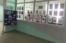 Обучающиеся 10 класса оформили фойе центрального входа портретами героев Великой Отечественной войны.