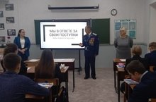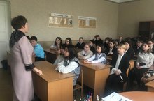 Ученики 8б класса с интересом слушали выступление участника боевых действий на Украине.