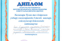 Районда уткән, "Туган тел" бәйрәменә багышланган, шигырь сөючеләр конкурсында 8 сыйныф укучысы Маннапова Ләйсән 2 нче урынга лаек булды. Әфәрин, Ләйсән!