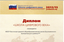 В 2012 – 2013 уч. году МБОУ Восточная СОШ награждена дипломом за активное участие в Общероссийском проекте «Школа цифрового века».