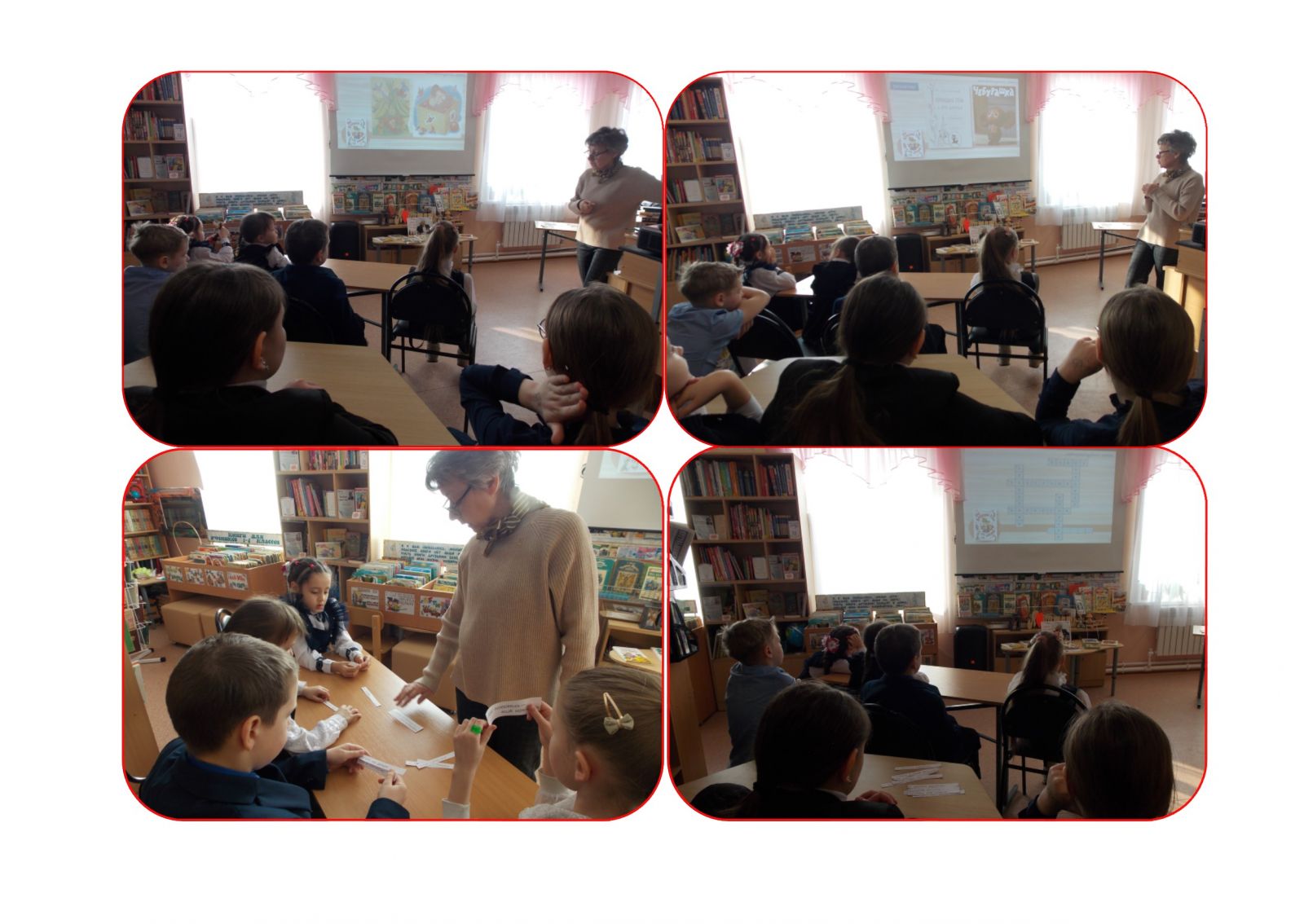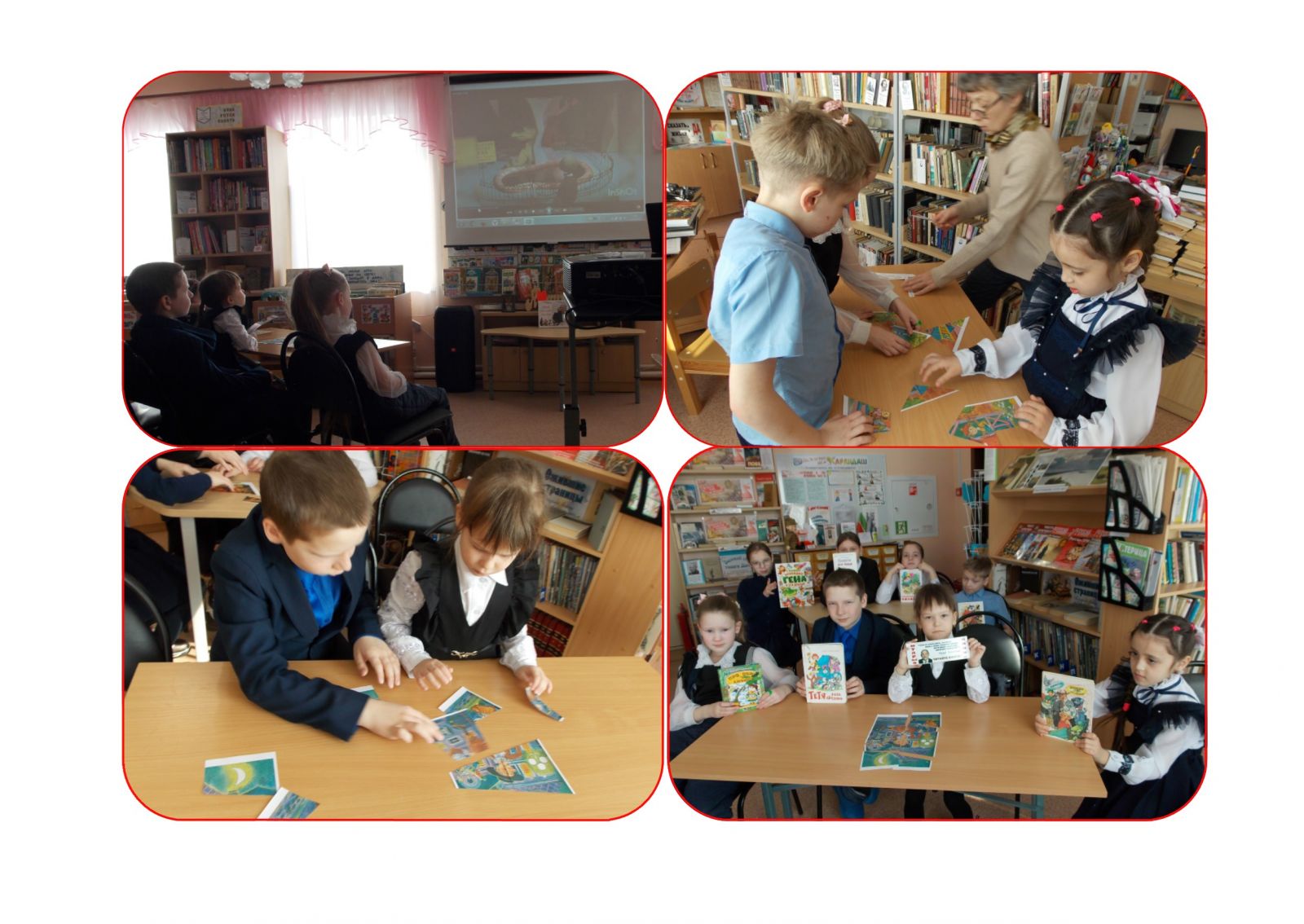 Учащиеся начальных классов приняли участие в литературном лото «Крокодил Гена и его друзья», приуроченном к юбилею одноименной сказки Эдуарда Успенского. В начале сельский библиотекарь рассказала о жизни и творчестве писателя, а ребята вспомнили героев его многочисленных произведений, которые вошли в золотой фонд детской литературы. Затем свои знания юные читатели проверили в конкурсах «Исправь ошибки», «Отгадай героя», «Угадай, кто написал это объявление?» и «Чей это диалог и с кем?». В заключение с большим интересом ребята посмотрели фрагмент любимого мультфильма о Гене и Чебурашке и вместе спели песню «Голубой вагон».
