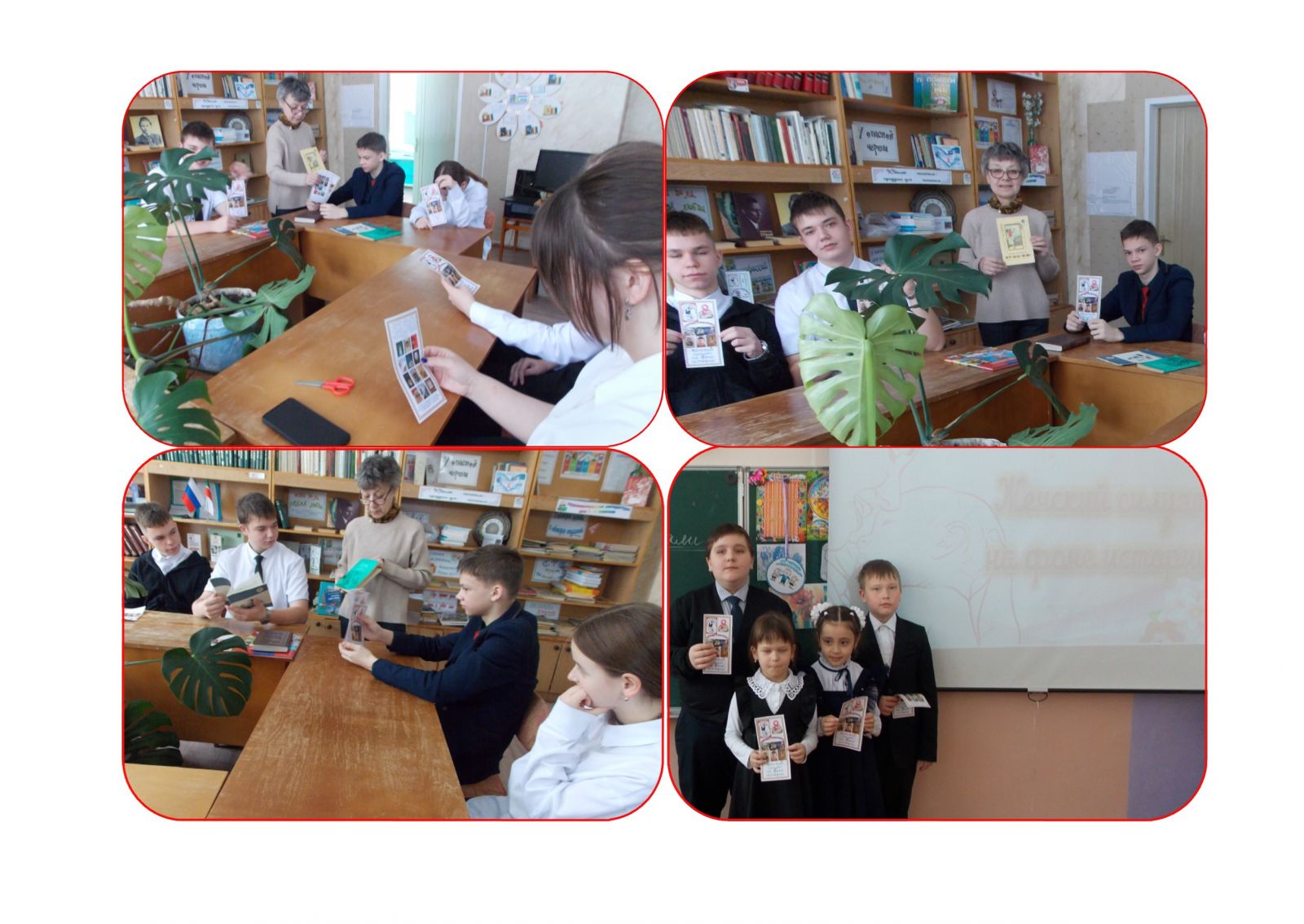 В канун Международного женского дня учащиеся школы приняли участие в буклет-акции «Женский силуэт на фоне истории». Получив полиграфическое издание и внимательно прочитав его, они нашли ответы на вопросы: что такое феминизм, что мы празднуем 8 марта, за что боролись и борются женщины? Здесь же был опубликован рекомендательный список литературы, кинофильмов и музыкальных произведений, посвященный женщинам, недрогнувшим под натиском судьбы и сумевших доказать себе и миру, что даже самая хрупкая, нежная, трепетная представительница прекрасной половины человечества способна бороться и побеждать.