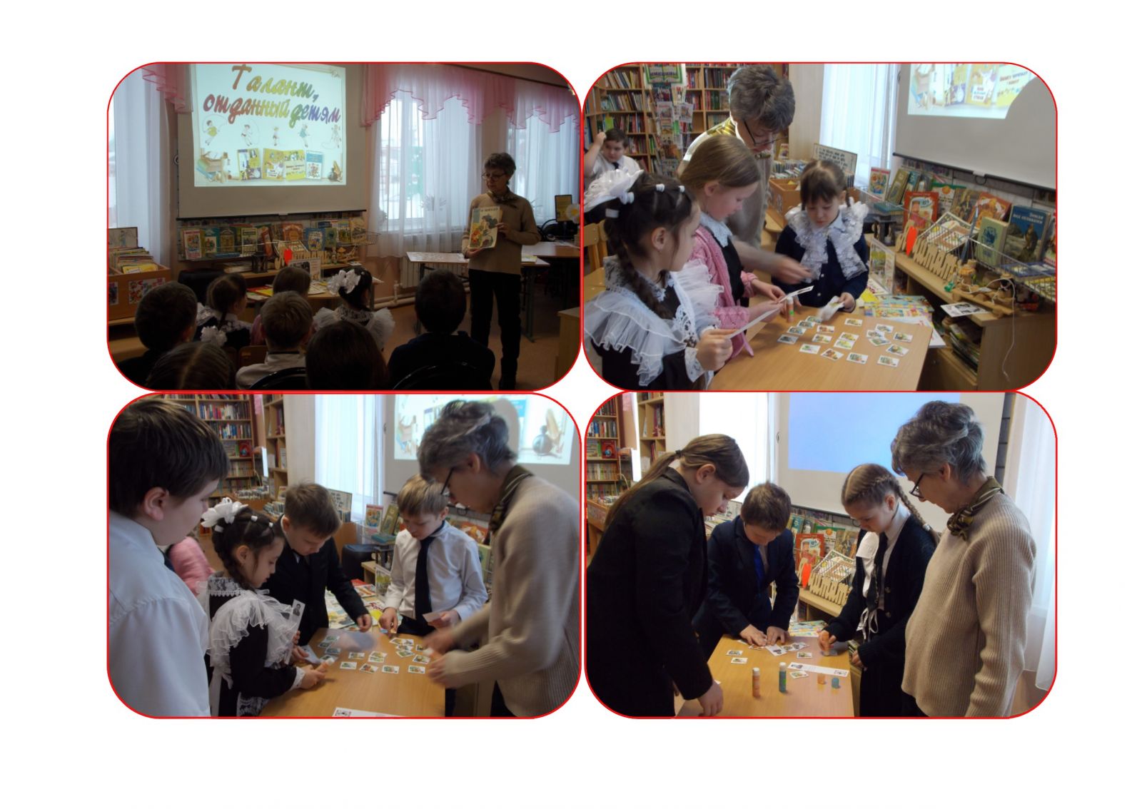 С учащимися начальных классов в сельской библиотеке было организовано литературное знакомство с творчеством Агнии Барто «Стихи, что греют душу». Вначале дети узнали интересные факты из биографии и творческой жизни поэтессы, затем читали наизусть её стихи, принимали участие в викторине, отгадывали загадки в стихах. Далее смастерили книжные закладки с рисунками героев стихов автора. Знакомство с поэзией А. Барто получилось веселым, познавательным и завершилось словами библиотекаря: «Книги Агнии Львовны, учат нас творить добро, быть радостным, честным, смелым, аккуратным и умелым»