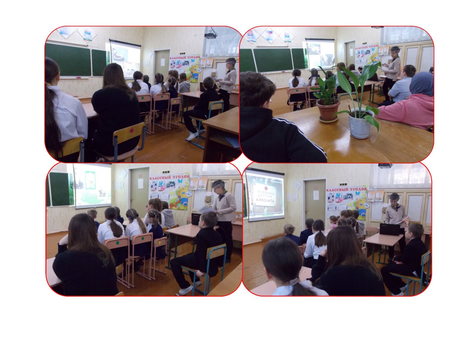 После просмотра фильма ребята разделились на группы пассажиров новогоднего экспресса. Каждый вагон подготовил свое поздравление для родителей, для учителей, для одноклассников, для детей и пожилых людей, находящихся в различных социальных центрах. Все поздравления обязательно попадут к своим адресатам.И, конечно же, к ребятам в гости на добрый урок заглянули любимые всеми гости: Дедушка Мороз с внучкой Снегурочкой. Они поздравили ребят с наступающим праздником и поблагодарили за добрые дела.
