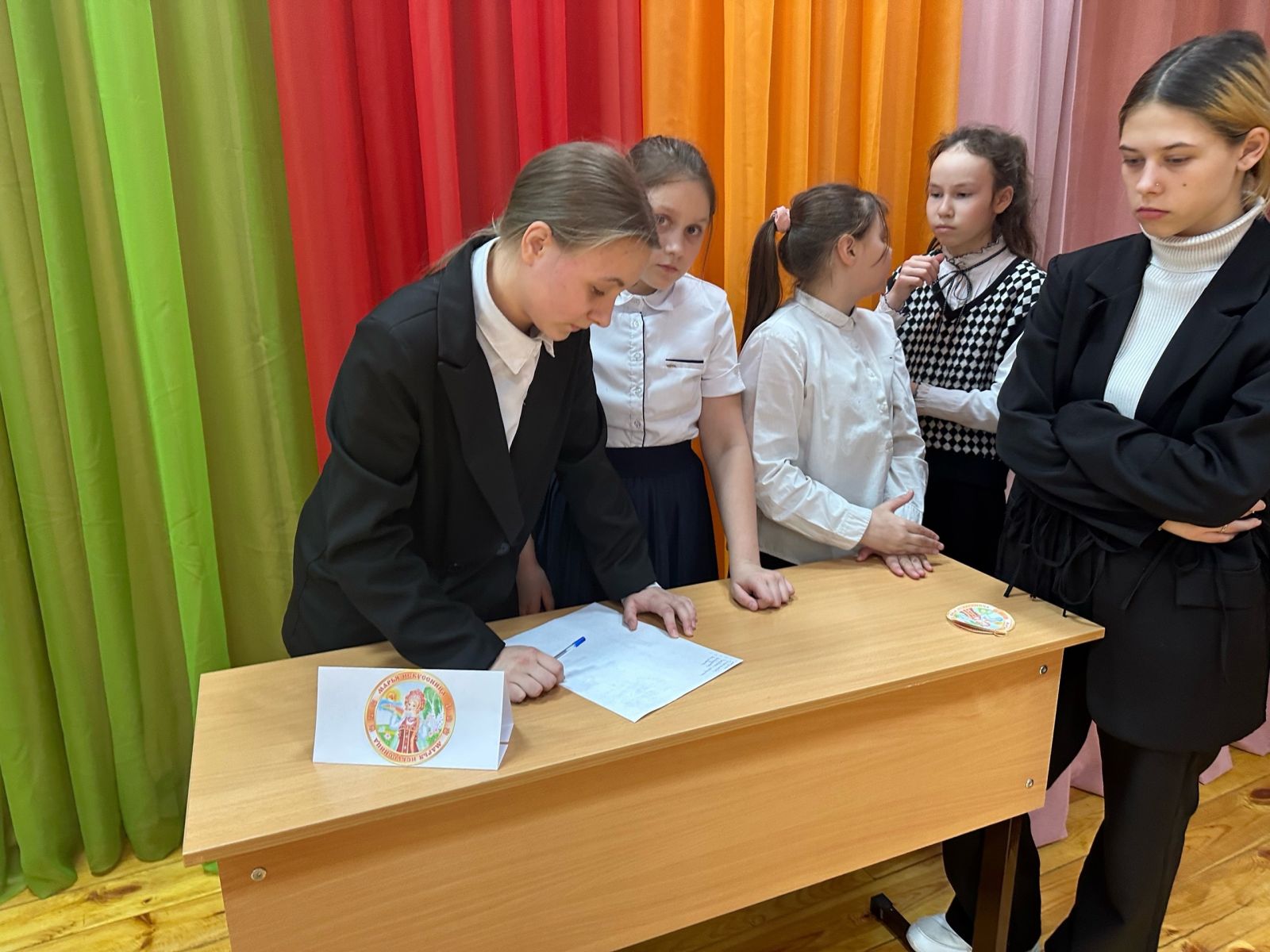 Учащиеся школы приняли участие в парламентском уроке «Святое дело – Родине служить!», который был приурочен Году защитника Отечества и 80-летию Победы в Великой Отечественной войне. Урок проходил в форме викторины, в которую были включены вопросы, связанные с ключевыми и памятными датами в истории Отечества, важнейшими историческими событиями в жизни государства и общества. В заключение мероприятия школьники просмотрели